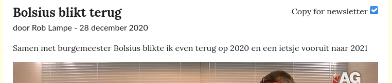 This does require that (the HTML structure of) the excerpt shown on the homepage/tijdlijn is already suitable to be pasted into the newsletter verbatim. Or if some mechanical changes are needed, those could maybe be done automatically (but because such changes are likely specific to the site, this is more suitable for the script-in-theme approach than the builtin-to-hypha approach).