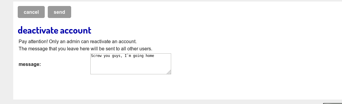 Personally, I wouldn't mind removing the "Screw you guys..." text, just leave the textbox empty by default?
